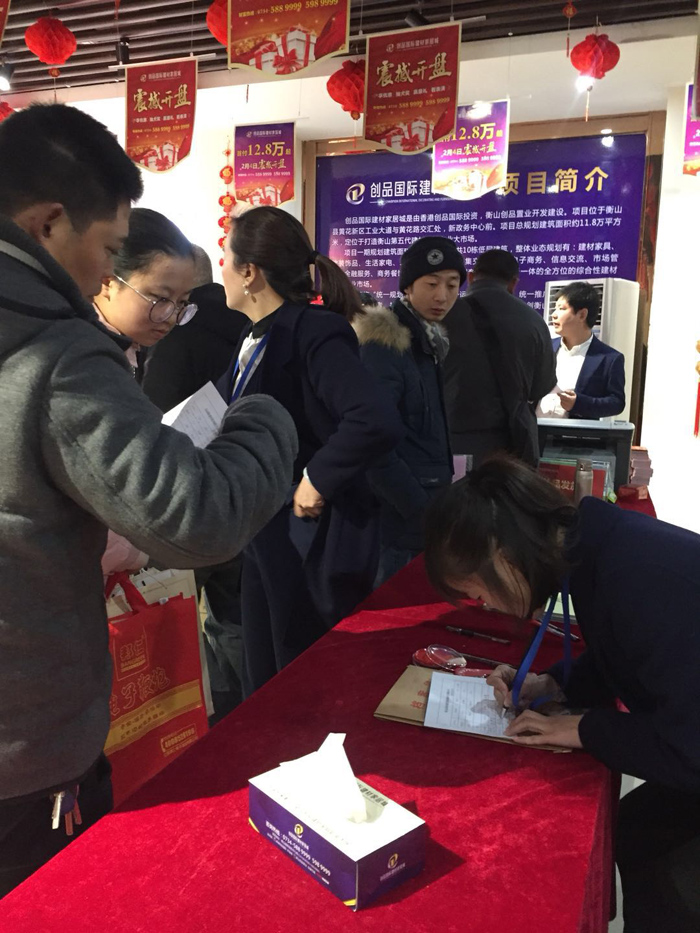 2018年2月4日,立春。創品國際項目一期盛大開盤,現場800余商戶、投資客、新聞媒體齊聚一堂,共同見證衡山首個建材家居專業市場開盤這一商業盛況。