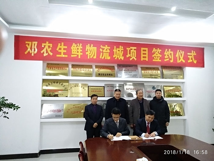 2018年1月18日,河南鄧農食品股份有限公司簽約國內商貿生態鏈運營專家機構-深圳華錦億爵商業地產顧問機構,打造“打造本土最具實力的冷鏈生鮮農副產品批發市場”。