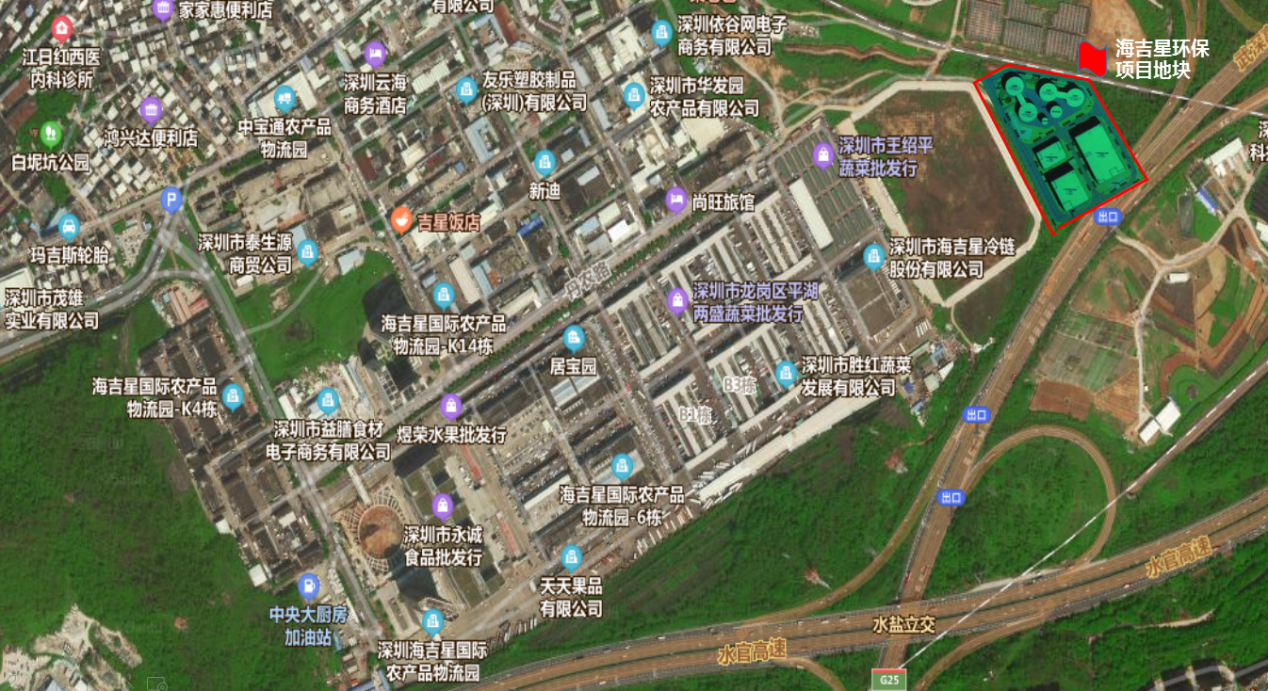 上圖為:深圳平湖海吉星農(nóng)批市場及環(huán)保項目地塊