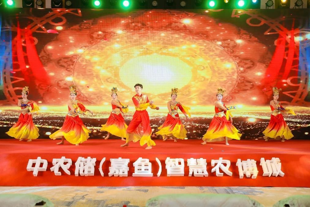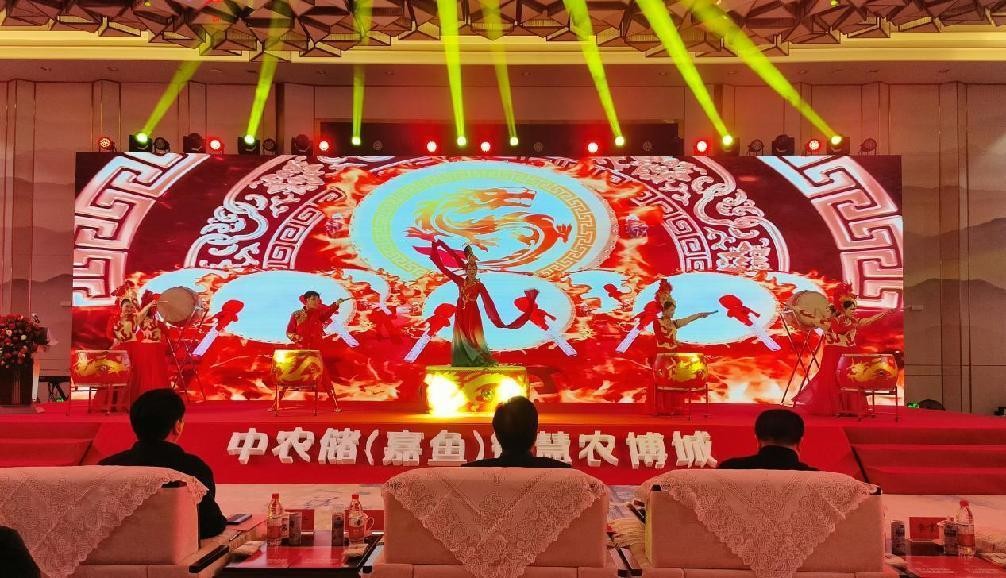 以鼓會(huì)友,鼓動(dòng)未來(lái)。中農(nóng)儲(chǔ)·嘉魚智慧農(nóng)博城農(nóng)副產(chǎn)品交易中心項(xiàng)目推介會(huì)在磅礴大氣的《龍鼓舞表演》拉開帷幕。