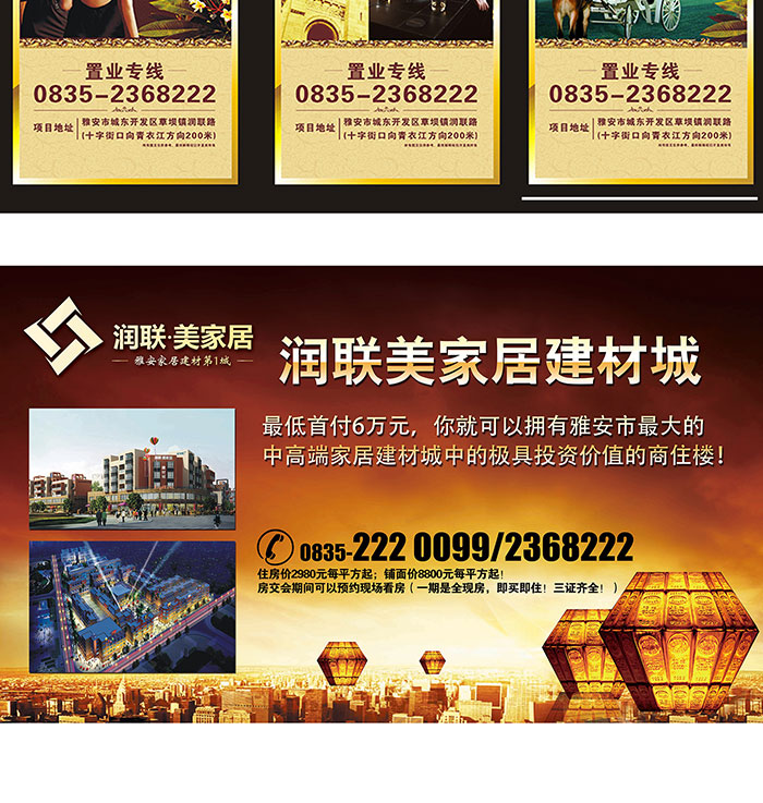 該項目早期,被定位為雅安市雨城區羽絨批發城,由于項目招商不成功,政府退出,由雅安潤聯投資置業有限公司(甲方)接手該項目。甲方將項目一期建成住宅加底商兩用的建筑格局,開始時項目樓盤銷售比較順利,2012年受國家房產調控的影響,住宅銷售受阻,商鋪未能銷售,甲方房產銷售舉步維艱。